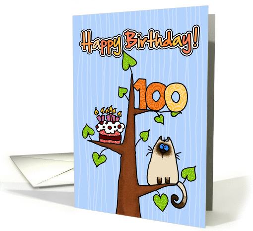 Happy Birthday - 100 years old - Kitty and Cake in tree