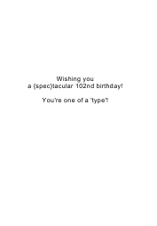 A blue vintage typewriter with a sunburst background. A piece of paper from the typewriter which has the words Happy 102nd Birthday in typewriter font and a silhouette glasses. A lovely birthday card for someone special turning 102.
