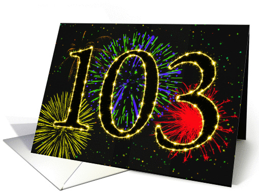 Exploding fireworks light up the sky on this spectacular birthday card. The numbers are outlined in sparklers. A birthday card suitable for everybody.Copyright Norma Cornes