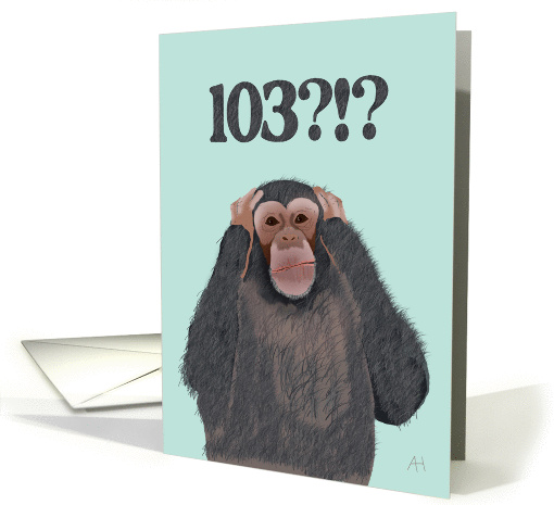 Title: | Chimpanzee Hear No Evil - Shocked by Age 103, Birthday Card |