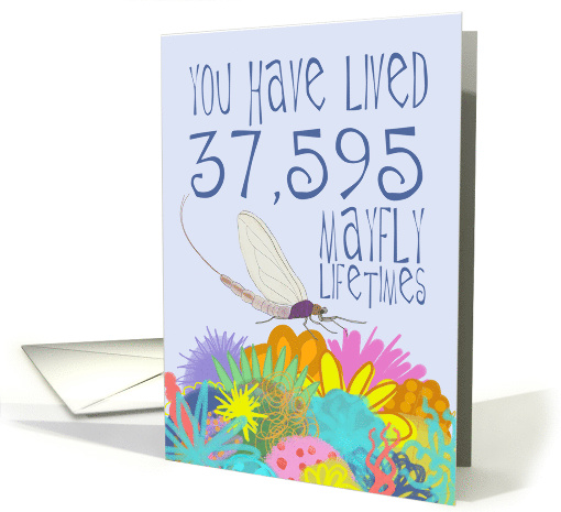 | Artist Notes: | Unique birthday card that exaggerates the age of your 103 year old friend or loved one in a funny way. Mayflies only live for 24 hours. By the time someone is 103 they have lived 37,595 mayfly lifetimes. |