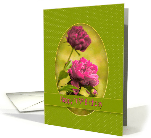 | Title: | Birthday, 105th, Pink Peony Flowers within an Green Oval Frame |