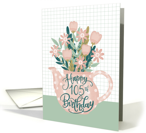 | Title: | Happy 105th Birthday with Pink Polka Dot Teapot of Flowers and Leaves |