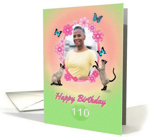 | Title: | 110th Birthday card with cats and butterflies, add photo and name |