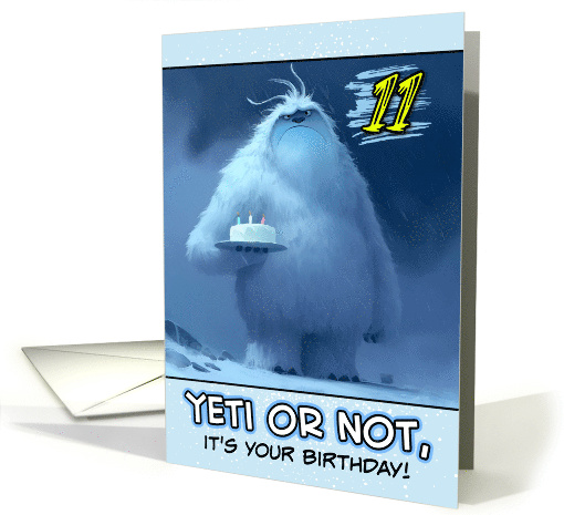 A famous creature of folklore, the elusive yeti, has emerged to give you a special birthday cake. 'Yeti or not, it's your birthday!' A humorous abominable snowman marks special day card to send to that special 11-year old who's larger-than-life personality matches this sasquatch's towering fabled stature.