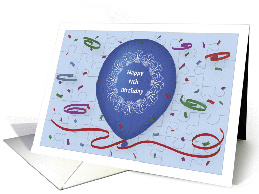 Happy 11th Birthday with blue balloon and puzzle grid
