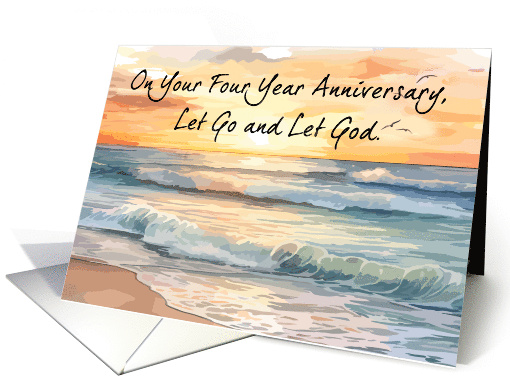 Celebrate four years of recovery with this beautiful card, featuring a serene watercolor beach scene at sunset. Waves gently crash against the shore, and the sky is filled with soft, warm hues, symbolizing the peace and trust that have come with time. This card is a meaningful way to honor the hard work, resilience, and faith that have carried the recipient through four years of growth and healing. A perfect reminder of the strength it takes to stay committed, with encouragement for the journey ahead.