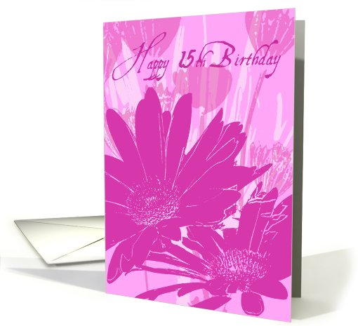 Pink Flowers 15th Birthday Card
