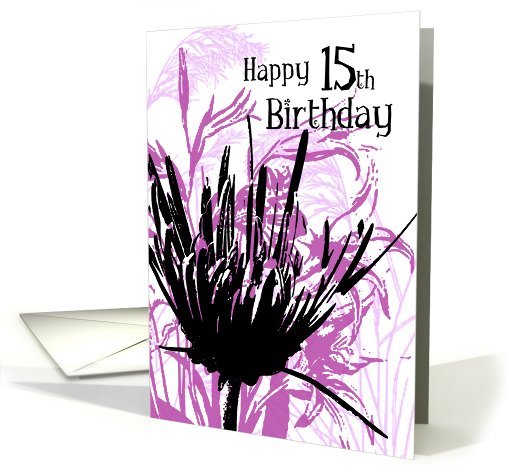Purple Flowers 15th Birthday Card