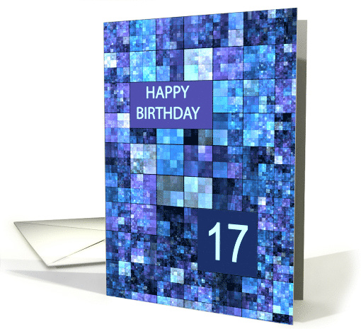 17th birthday card. Wish a happy birthday with an elegant card. Blue and purple squares combine to make a cool masculine birthday card.