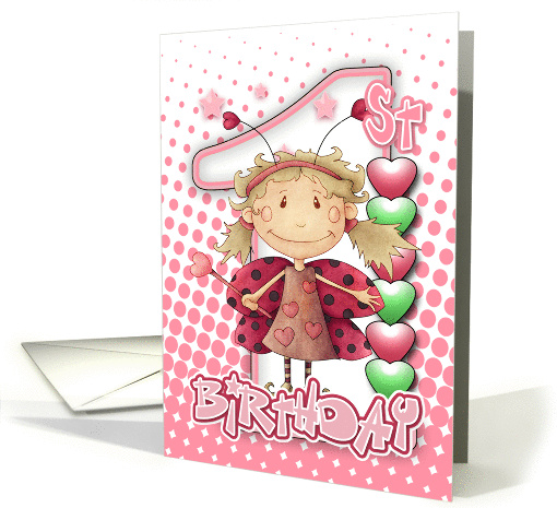 Cute first birthday fairy greeting card, all in pretty blending pinks