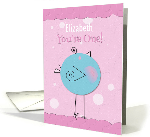 Happy First Birthday You're One Girl Custom Name Blue Birdie