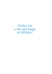 This darling birthday card is designed for a very special one year old and is able to be personalized with their name at the top of the card, written across the little yellow balloon that is tied to the single golden-colored horn on the white unicorn's head. A flowing pink, green and blue mane, all around the pointed horn, duplicates the same colors as the rainbow and is highlighted with a large pink and lavender flower. "Magical Birthday Wishes" is hand lettered, in lovely black lettering, over the top of the arching and vividly colored rainbow, with the word "1st" proceeding the wording. This delightful card's inside wording says "A birthday wish, for a sweet little girl, on her first birthday!"