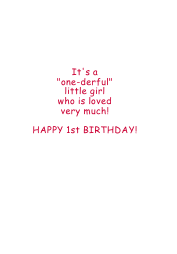 This green parrot bird is perched on a large number one. Filled with lots of dots, this sweet pink card wishes a “one-derful” little girl a very happy birthday! Add her name for a delightful 1st birthday card!