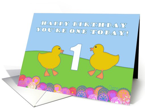 Happy Birthday You're One Today! Yellow Duckling Farm Animals