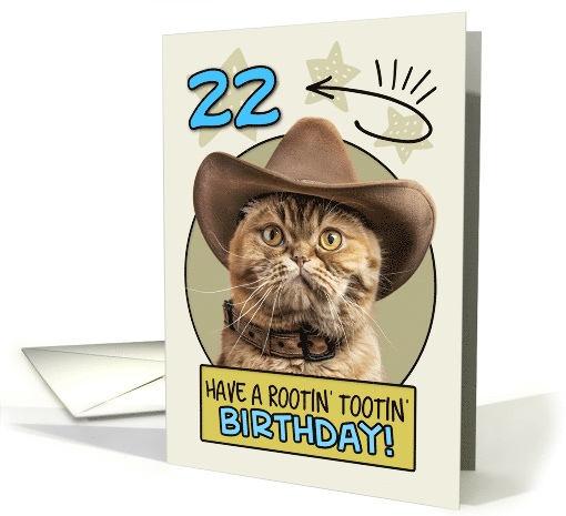 22 Years Old Happy Birthday Cat with Cowboy Hat