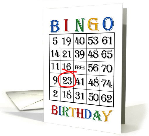 | Artist Notes: | 23rd Birthday card. Say Happy Birthday to a bingo player with a bingo card. The age is circled in red. A bingo crazy player will get a huge kick out of this card! Copyright Norma Cornes. |