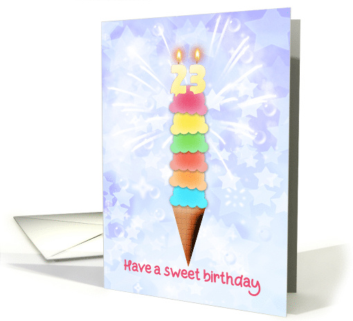 | Artist Notes: | 23rd birthday card for someone who loves ice cream. A very sweet birthday card! Six scoops of flavoured ice cream stacked on a cone. On top of it all birthday candles burn happily. A wonderful way to send a happy birthday message to someone with a sweet tooth! |