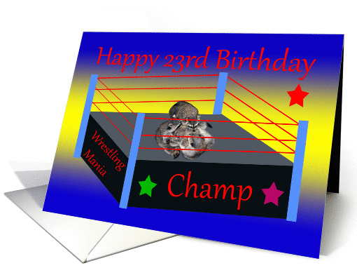 | Artist Notes: | Say Happy 23rd Birthday to a wrestling fan who loves entertainment wrestling with three raccoons in a ring with stars |