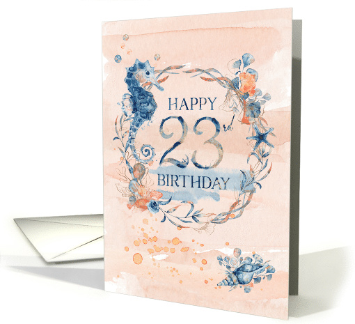 | Title: | 23rd Birthday Seahorse and Shells Watercolor Effect Underwater Scene |