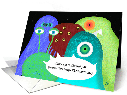 | Title: | Aliens in Outer Space Happy 23rd Birthday Greeting Card |