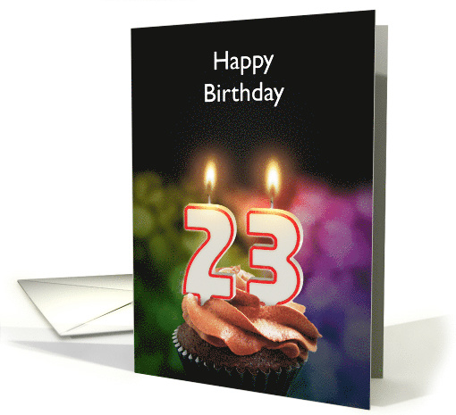 | Artist Notes: | 23rd birthday card with candles on a birthday cake. Add a name to customize this card with burning candles on a cupcake. A great birthday card, suitable for a man or a woman. |