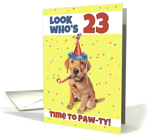 | Title: | Happy 23rd Birthday Cute Puppy in Party Hat Humor |