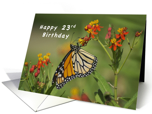 | Title: | Happy 23rd Birthday, Monarch Butterfly on Red Milkweed Flowers |