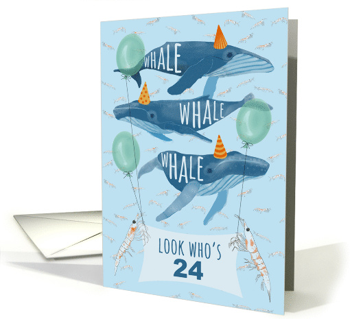| Artist Notes: | This humorous whale pun card featuring adorable whales in party hats is a fun way to wish a friend or loved one a happy 24th birthday. |