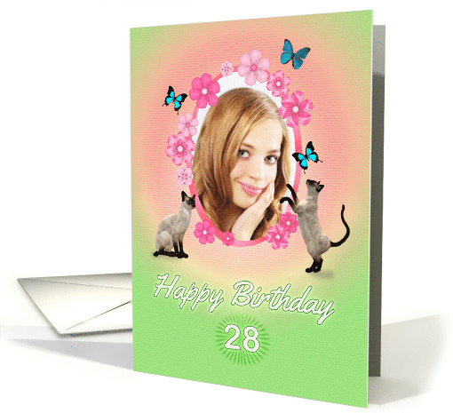 | Title: | 28th Birthday card with cats and butterflies, add photo and name |
