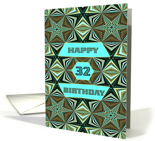 A stylish and modern 32nd birthday card. A complicated abstract design that is lively and interesting.