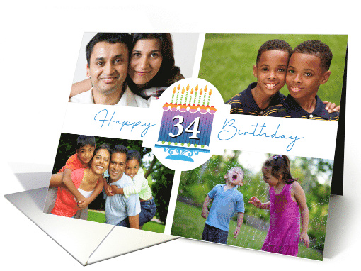 | Artist Notes: | A special 34th birthday card with a striped cake and candles and the number 34 in the center. Add 4 custom photos to make it even more personal. İMindy Pierce |