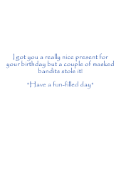 I got you a really nice present for your birthday but a couple of masked bandits stole it!