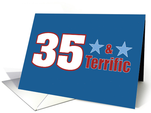 Do you know a terrific male relation that is turning 35? Show him you're thinking of him with this terrific birthday card that says 35 & Terrific.