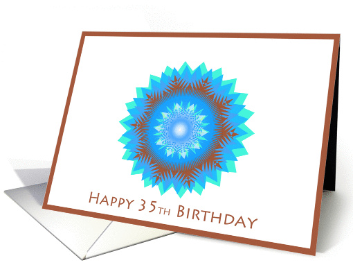 Happy 35th Birthday, star flower in blue, green, brown