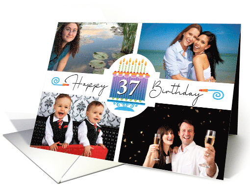 | Artist Notes: | A special 37th birthday card with a striped cake and candles and the number 37 in the center. Add 4 custom photos to make it even more personal. İMindy Pierce |