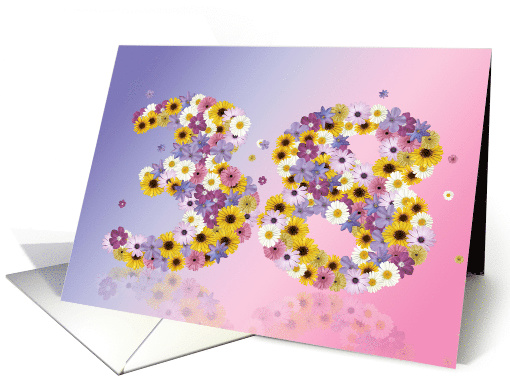 38th birthday card. A fun birthday card with happy numbers made from daisy flowers. A great card for a beautiful lady.