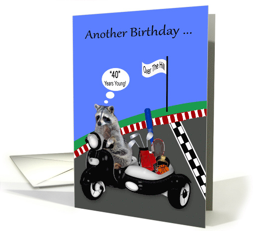 | Title: | 40th Birthday, over the hill humor, adorable raccoon driving a scooter |