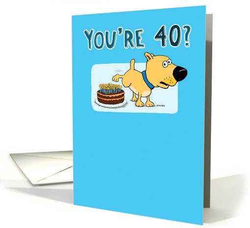 | Artist Notes: | Here's a funny birthday card for someone turning 40. It features a dog peeing on a birthday cake with many candles, with a reminder that the years are whizzing past. |