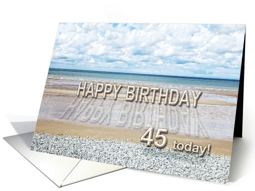 45th Birthday, Beach with 3D sand letters