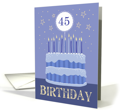 ©DaleSimpson. Send 45th Birthday Wishes with this fun simple blue themed Birthday Cake with lots of candles. Birthday text Distressed style.