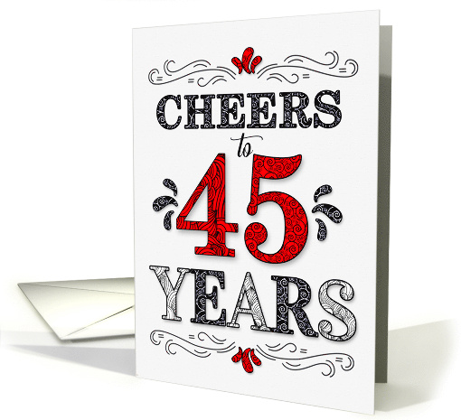 Cheers to 45-years! What a simple, elegant and fun birthday card for someone turning forty-five. Abstract patterns in a simple color palette that includes a pop of red.