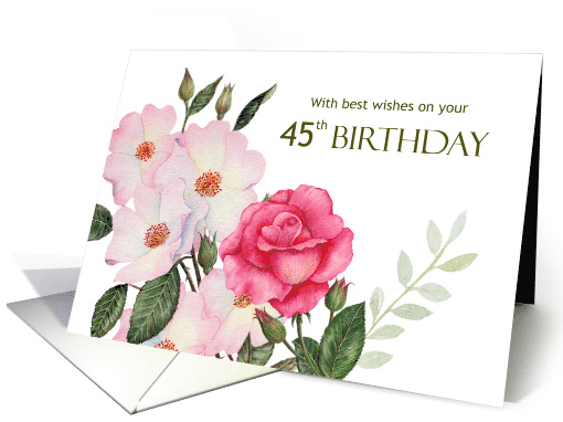 45th Birthday Wishes Watercolor Pink Roses Illustration