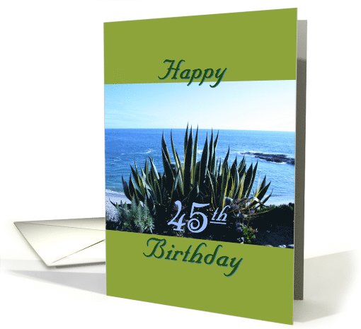 This birthday card for someone turning 45 features an agave (century) plant on a beach. Behind it is the Pacific Ocean. The poem was written by myself. You may choose a matte finish instead of glossy, or change/add to the inside greeting free of charge.