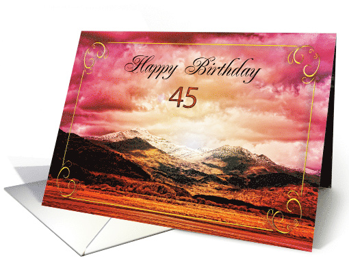 45th Birthday with a glorious sunset. The sun is setting behind the mountains with wonderful colors.The view is of Snowdonia in Wales.
