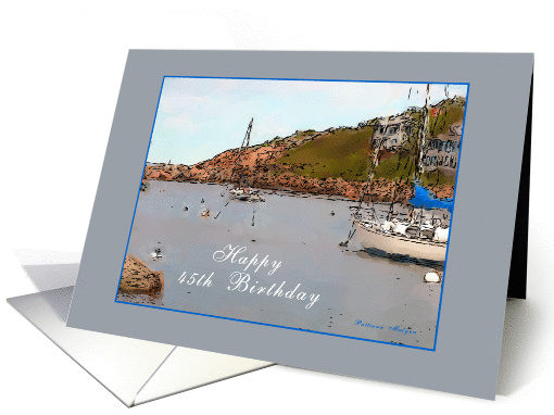 A 45th birthday card for those who like the seaside and sailboats. Digital painting © Pattiann Malynn Digital painting of Gloucester, Massachusetts