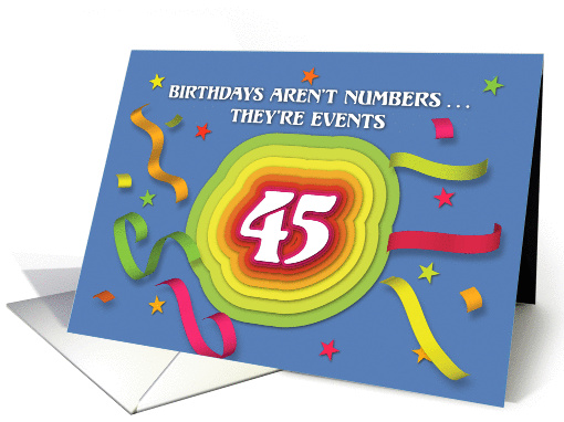 Happy 45th Birthday Celebration with confetti and streamers