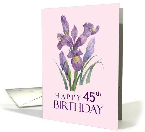 Happy 45th Birthday Purple Irises Watercolor Floral Illustration