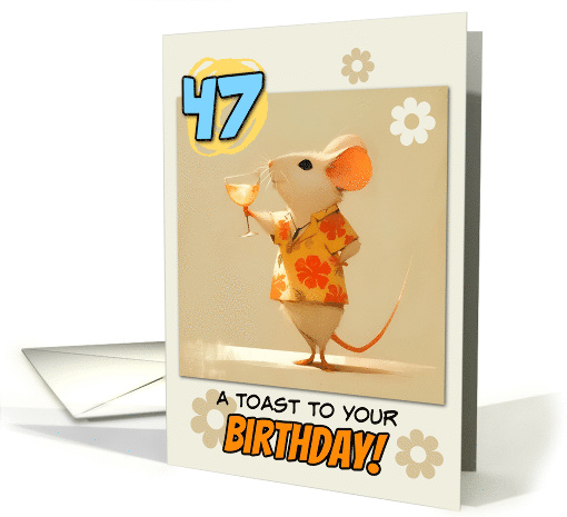 | Artist Notes: | A little rat in a Hawaii shirt is lifting a cocktail and toasting to your good health on a beige background with a flower pattern and a blue number 47 in the left corner and the text "A toast to your birthday!" A fun birthday card for that special 47-year old |