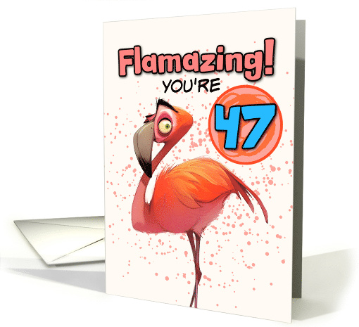 | Artist Notes: | A pink cartoon flamingo on a light pink background with pink grunge splatter effect and the text "Flamazing! you're 47. A fun card to send to someone special who adds another candle to their cake. |